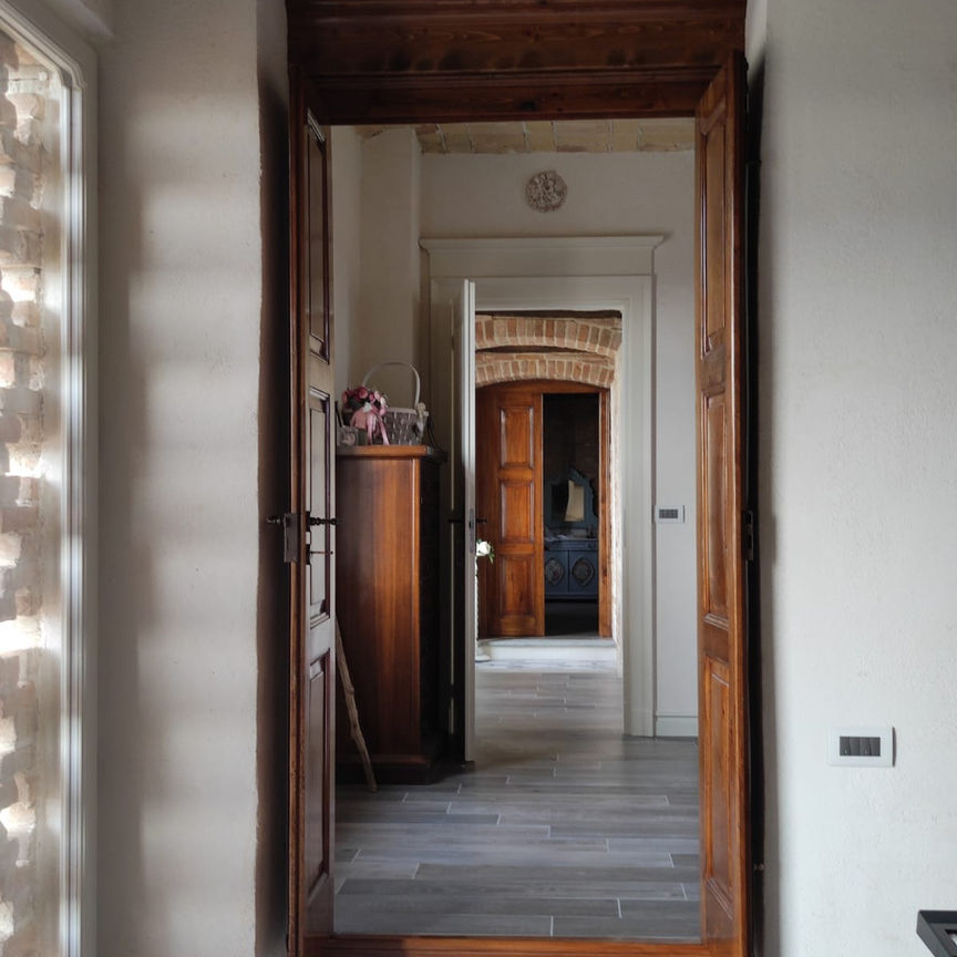 Il progetto di Restauro dell'antica Cascina Piemontese ha dato spazio alla rifunzionalizzazione di 170 mq abitativi, nel completo rispetto della preesistenza e dell'identità storica dell'edificio. La conservazione degli elementi storici e l'integrazione nuove componenti in stile ha permesso di dare nuovamente lustro alla tradizione costruttiva locale ed al genius loci. In particolare, il mantenimento della struttura di aerazione tipica del fienile e il posizionamento, all'interno, di due grandi vetrate apribili, ha permesso, dall'esterno, la conservazione di un elemento di identità del luogo mentre, dall'interno, genera una schermatura solare che inviata alla contemplazione del paesaggio circostante.